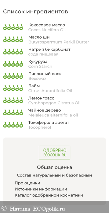 Наташа: Натуральный твёрдый дезодорант "Лайм-чайное дерево" от Лавандового края