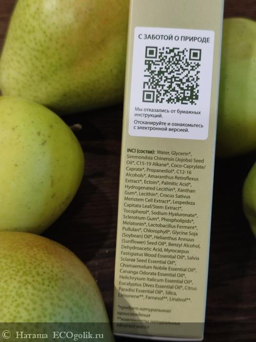 Water, Euglena Gracilis Extract*, Glycerin*, Simmondsia Chinensis (Jojoba) Seed Oil*, C15-19 Alkane*, Coco-Caprylate/Caprate*, C12-16 Alcohols*, Amaranthus Retroflexus Extract*, Ectoin*, Palmitic Acid*, Hydrogenated Lecithin*, Xanthan Gum*, Lecithin*, Crocus Sativus Meristem Cell Extract*, Tocopherol*, Sodium Hyaluronate*, Sclerotium Gum*, Phospholipids*, Melatonin*, Lactobacillus Ferment*, Pullulan*, Chlorophyll*, Benzyl Alcohol, Dehydroacetic Acid, Potassium Sorbate, Sodium Benzoate, Myrocarpus Fastigiatus Wood Essential Oil*, Salvia Sclarea Seed Essential Oil*, Chamaemelum Nobile Essential Oil*, Cananga Odorata Essential Oil*, Helichrysum Italicum Essential Oil*, Eucalyptus Dives Essential Oil*, Citrus Paradisi Essential Oil*, Limonene**, Farnesol**, Linalool**.