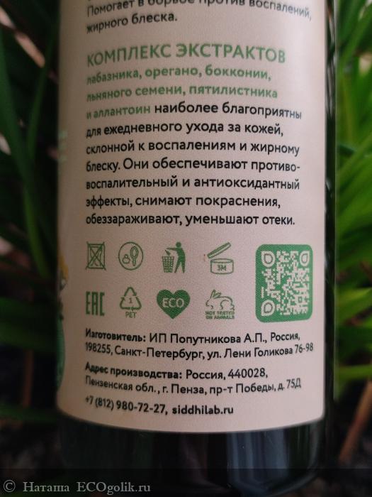 Комплекс экстрактов лабазника, орегано, бокконии, льняного семени, пятилистника кустарникового и аллантоин наиболее благоприятны для ежедневного ухода за кожей, склонной к воспалениям и жирному блеску.