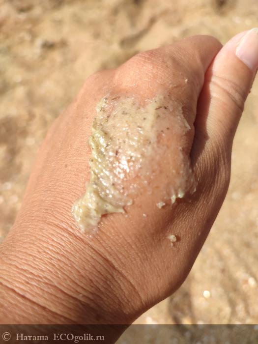 Консистенция: достаточно густая, нетекучая, с вкраплениями, не однородная, легко распределяется по коже