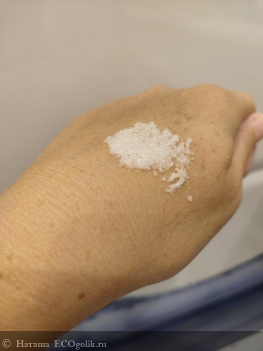 При нанесении на кожу чувствуются скрабирующие частички, для тела в самый раз.
