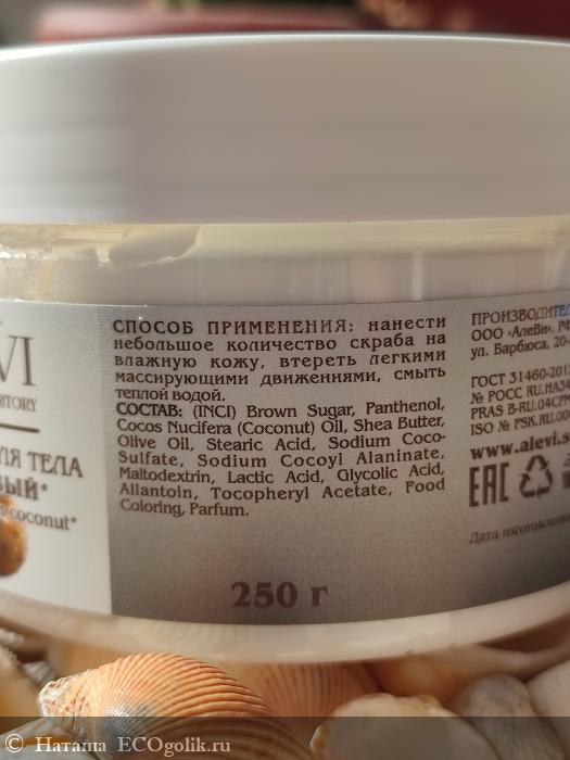 Мои впечатления от использования скраб-крема для тела "Кокосовый"🥥 от AleVi только самые положительные, начиная от внешнего вида и аромата, заканчивая эффектом от применения.