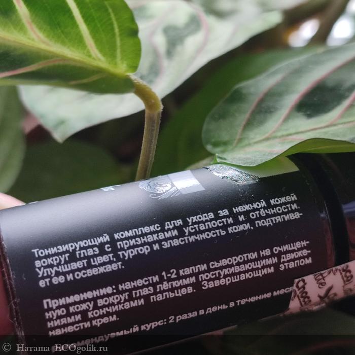Сыворотка представляет собой тонизирующий комплекс для ухода за нежной кожей вокруг глаз с признаками усталости и отёчности.