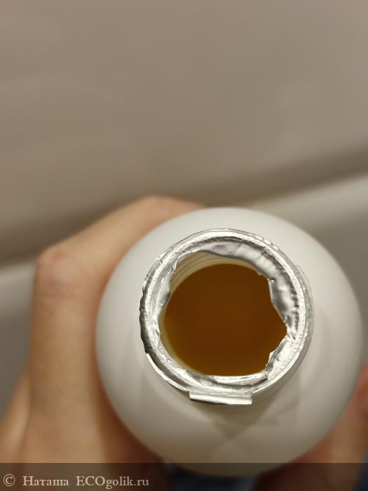 Флакон со средством выполнен из белого пластика и оснащён крышкой флип-топ. По поводу крышки: поскольку масло всё-таки жидкое, то 💯 аккуратно взять необходимое количество трудно, капля масла всегда остаётся на флаконе🫣. Поэтому в данном случае был бы удобнее дозатор.