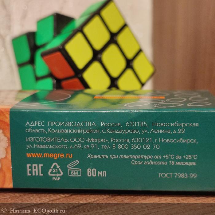 На другой боковой стороне упаковки эмблема бренда "Звенящие кедры России", к которой относится Megre: