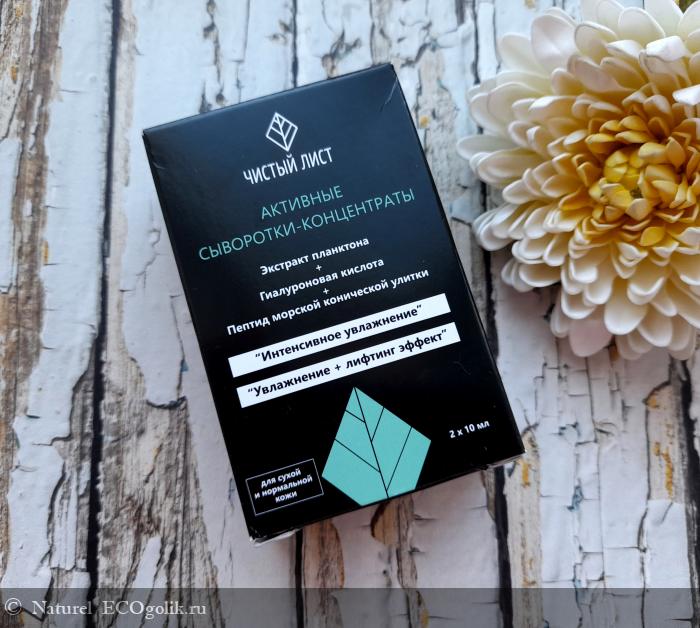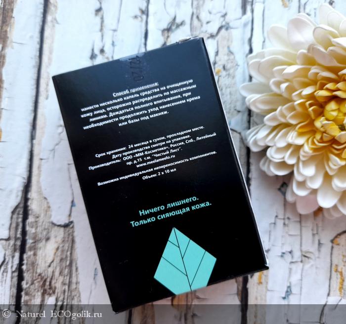 Сыворотки приходят в небольшой коробочке, дизайн которой строгий и лаконичный и идентичен всем средствам серии «Чистый лист».