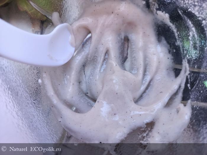 Я делала все по инструкции, делая корректировку на свой объем. Масса получается липкой и похожей на кисель. По совету Олеси, я не стала сразу использовать полученную субстанцию и дала ей немного настояться, около 5 минут, и проблем с нанесением и распределением у меня не возникло.