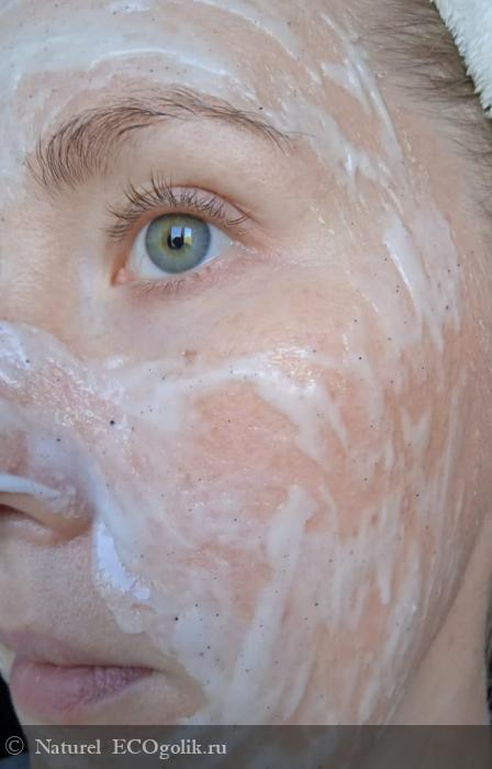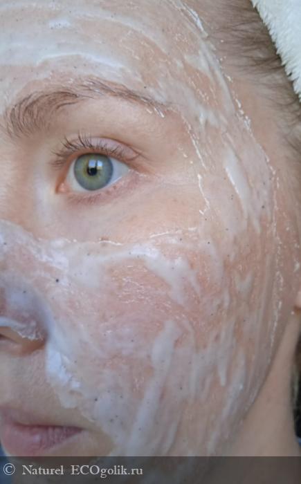 За все время, что маска находилась на лице, коже было очень комфортно, она не чувствовал жжения, пощипывания и других неприятных ощущений. Пилинг не норовил убежать с лица, не капал. Подсыхал он немного по краям, поэтому гидролатом сбрызгивать все же пару раз пришлось.
