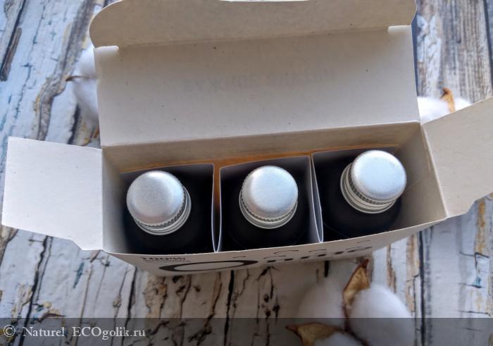 Заглянув внутрь мы увидим три флакончика, каждый из которых упакован в свою ячейку.