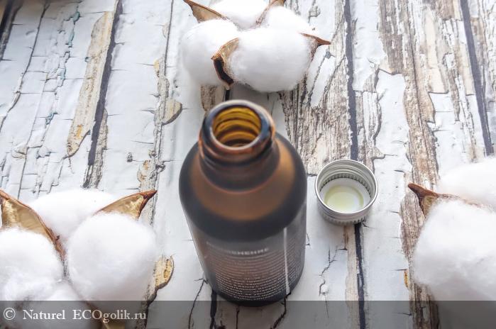 Флакончик изготовлен из темного стекла, которое защищает содержимое от вредного воздействия солнечных лучей.