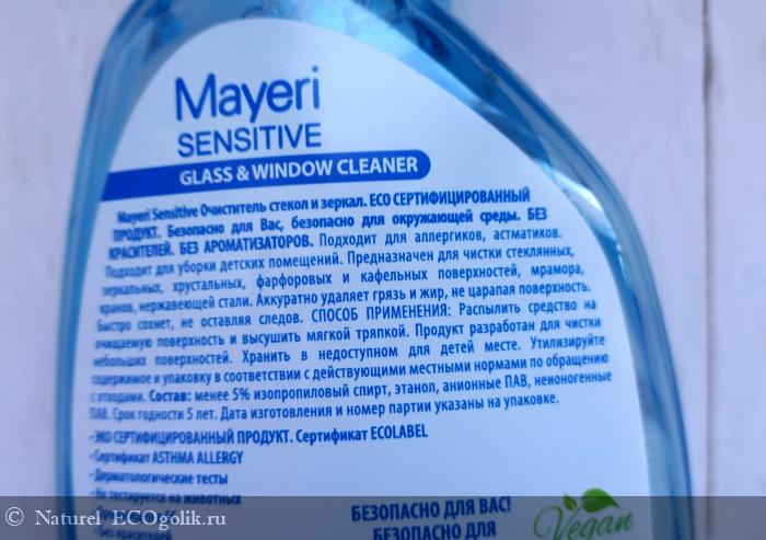 Очиститель стекол и зеркал от бренда Mayeri Sensitive мне понравился. Не смотря на не полностью раскрытый состав, этот продукт задержится в моем доме, ведь он здорово облегчает мне уборку.