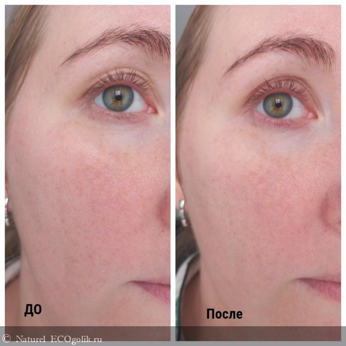 После применения кожа выглядит более свежий, тон лица становится ровнее