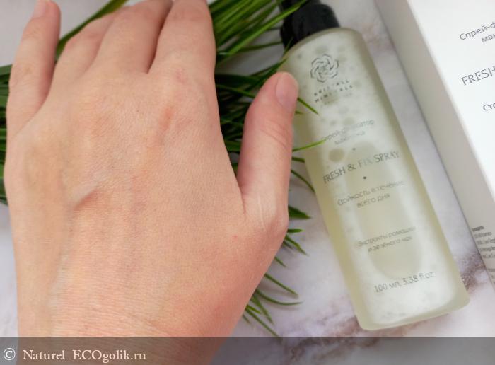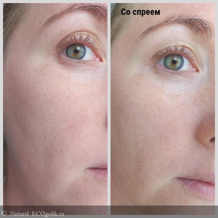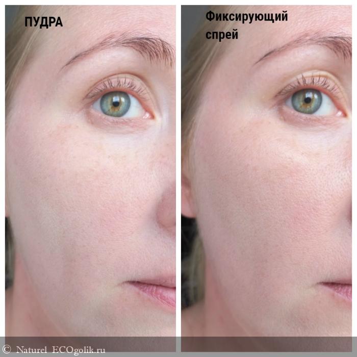 Обычно чтобы пудра хорошо уселась на кожу я закрываю его сверху гидролатом, но в жару это не всегда комфортно, так как макияж может поплыть. И вот в этом случай спрей-фиксатор просто невероятно выручает.