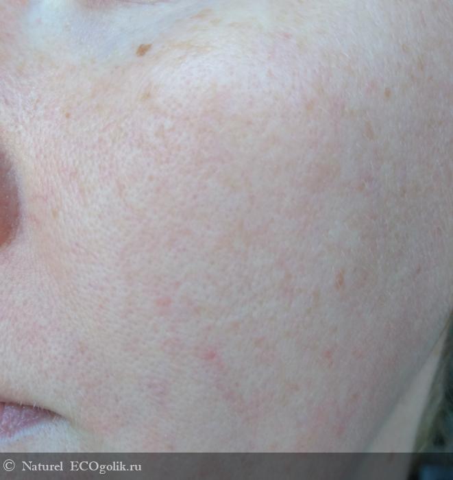 Продукт не сушит и не стягивает кожу, кожа после его использования становится очень мягкой, цвет более ровным, он совершенно не раздражает мою чувствительную кожу.