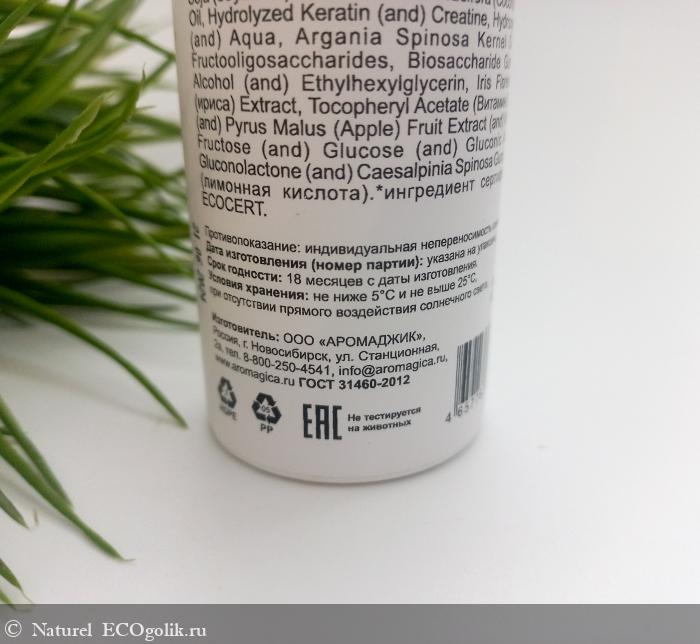 Состав богат на различные вкусняшки для волос: фосфолипиды, кератин, инулин, масло кокоса и арганы, направленные на увлажнение, кондиционирование и придание волосам блеска.