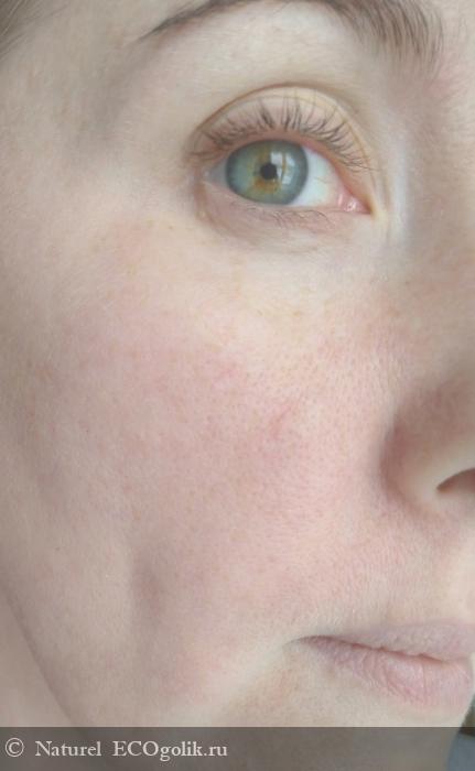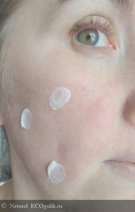 Крем отлично подходит как основа под макияж, минеральная косметика (да и вообще любая косметика) ложится на него идеально и не плывет в течение дня. Крем не скатывается, не оставляет разводов и не провоцирует появление жирного блеска, даже слегка матирует.