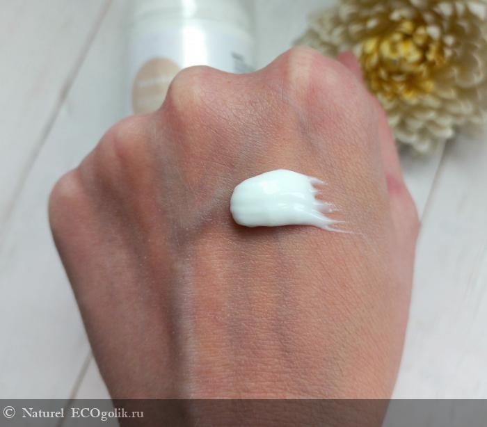 Крем обладает очень приятной текстурой, он хорошо распределяется по коже и быстро впитывается, не оставляя после себя чувство маслянистости или липкости, да и вообще никакого дискомфорта находясь на коже он не доставляет, а его присутствие не ощущается.