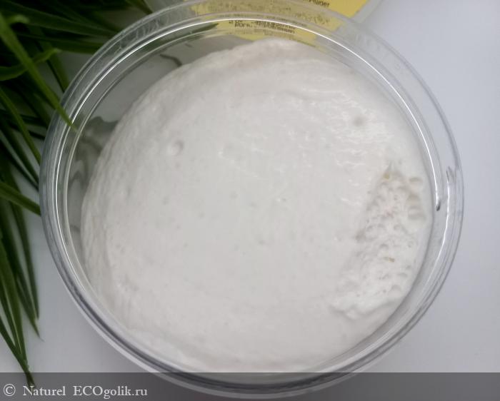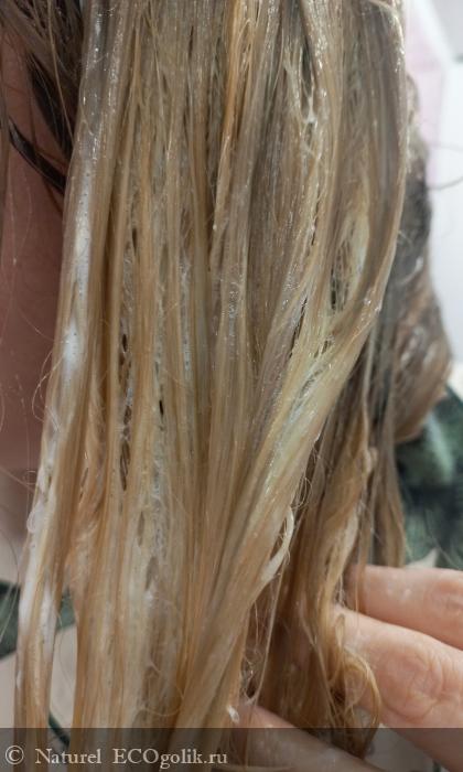 Маска хорошо распределяется, обволакивая каждый волосок, причем она не проваливается, и после нанесения и спустя выдержанное время ощущается ее присутствие на волосах. Именно такая скользская текстура не позволяет переборщить продукт и как следствие обеспечивает экономичный расход.