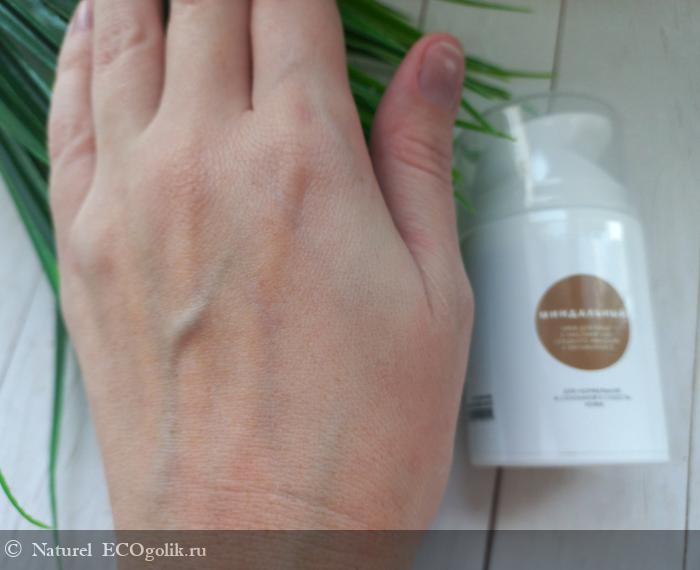 Крем имеет приятную консистенцию белоснежного цвета. Аромат миндальный, но очень легкий и ненавязчивый. Он особо не ощущается во время нанесения, а на коже и вовсе очень быстро пропадает.