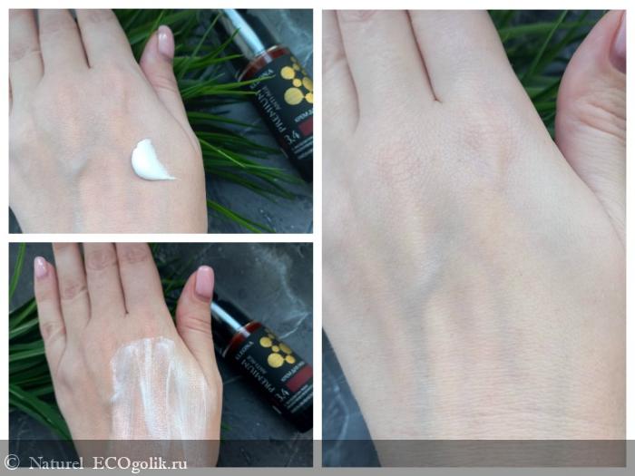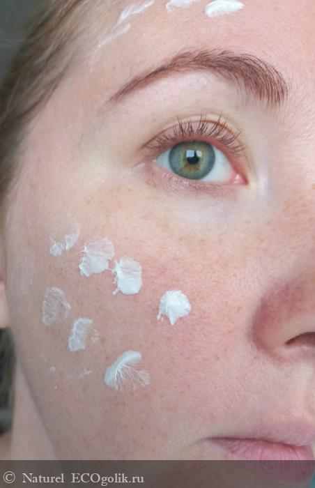 Крем имеет густую и довольно плотную консистенцию, при этом он легко распределяется по коже, не оставляя после себя жирности.