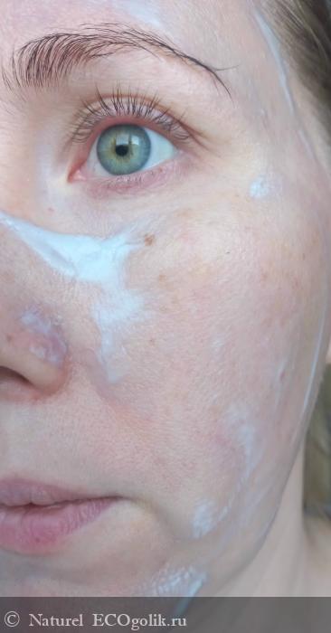 Маску я использую 2 раза в неделю. Наношу тонким слоем на кожу лица и даю подсохнуть 15 минут. Хочу отметить, что за время экспозиции маска не стягивает кожу, не сушит ее и носить ее вполне себе комфортно.