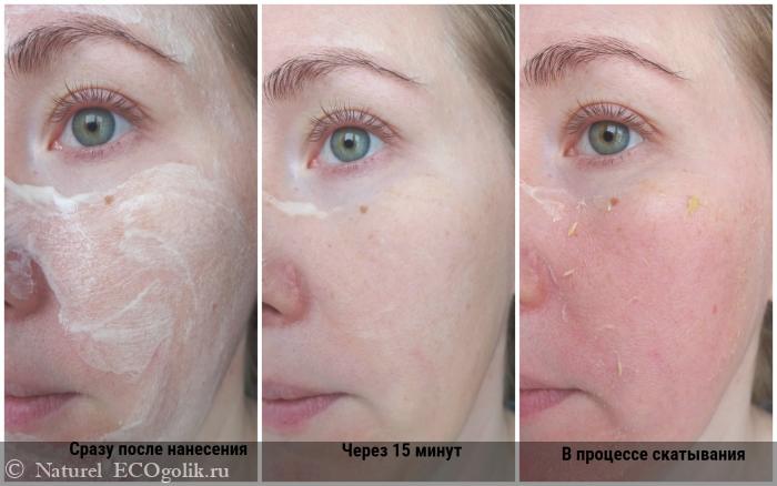 Маска прекрасно скатывается, при этом не нужно сильно растягивать кожу, или чрезмерно тереть, все происходит очень бережно.