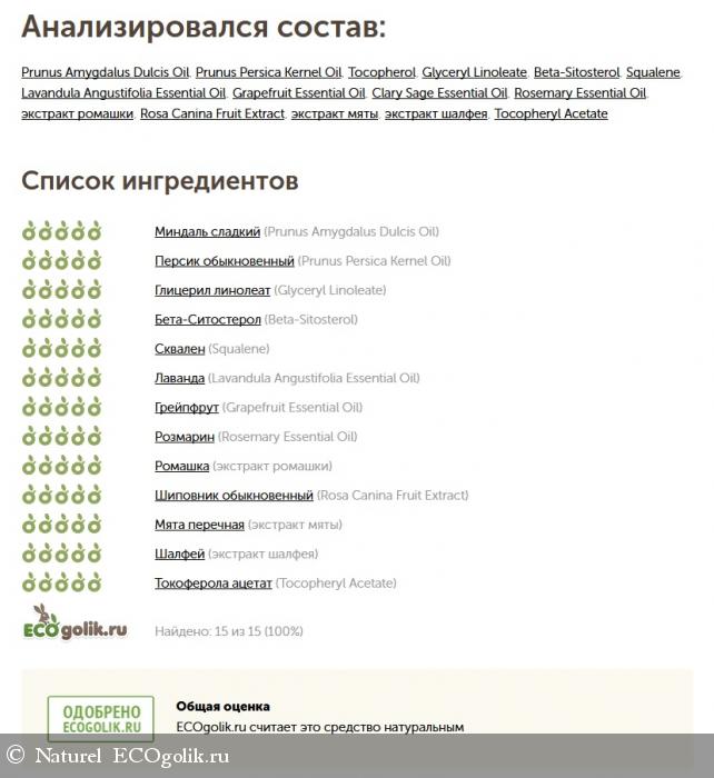 Состав масла полностью натуральный и каждый ингредиент получил заслуженные 5 яблочек.