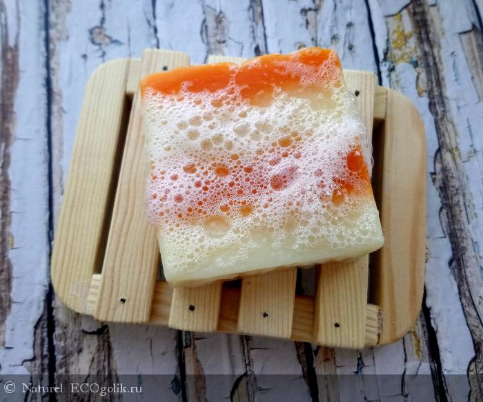 Несмотря на наличие такого сочного названия «Апельсин и Корица» аромат у мыла очень и очень слабый, практически неуловимый. Кому – то это может понравиться, но вот я, как любитель такого сочетания была немного огорчена.
