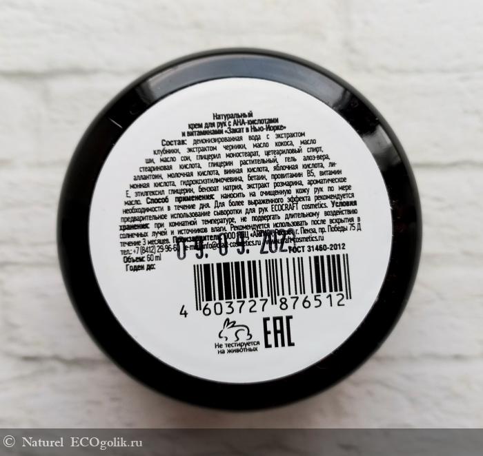 Naturel: Натуральный крем для рук c АНА-кислотами и витаминами "Закат в Нью-Йорке" от бренда ECOCRAFT