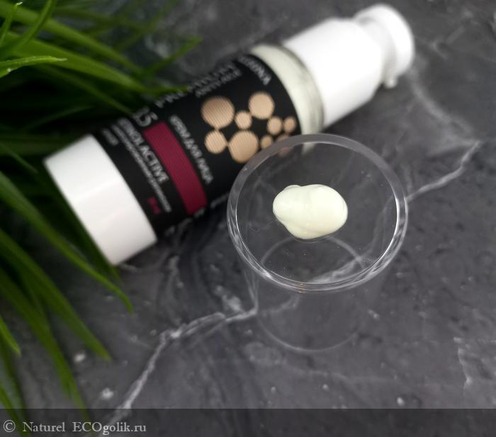 Крем имеет приятную легкую консистенцию белого цвета. Текстура масляная, но не плотная.
