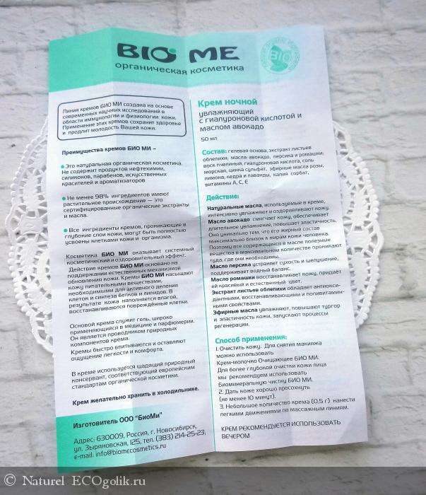 Naturel: Ночной увлажняющи крем с гиалуроновой кислотой и маслом авокадо от бренда Bio Me