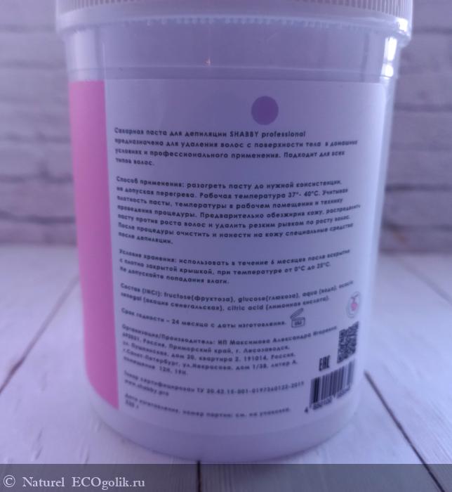 Пастой работать очень и очень комфортно, она легко и быстро удаляет волоски с корнем, не обламывая их, и не оставляя на коже раздражений и повреждений. Хотя отсутствие раздражение это еще и заслуга подготовительного этапа, а также последующего ухода, который у ShabbyPro также на высоте.