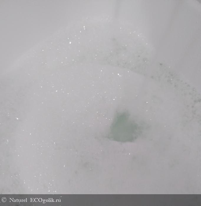При добавлении продукта под струю горячей воды, он начинает пениться, образуя мягкую и воздушную пену, которая к сожалению быстро оседает и держится максимум 10 минут. Например, успокаивающая пена от бренда Onme пенилась значительно лучше и дольше держалась.