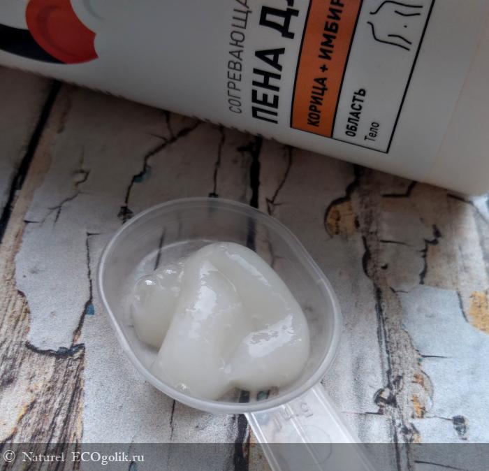 Аромат пены действительно согревающий, настоящая корица, приправленная пикантностью имбиря. При этом он очень мягкий и ненавязчивый.