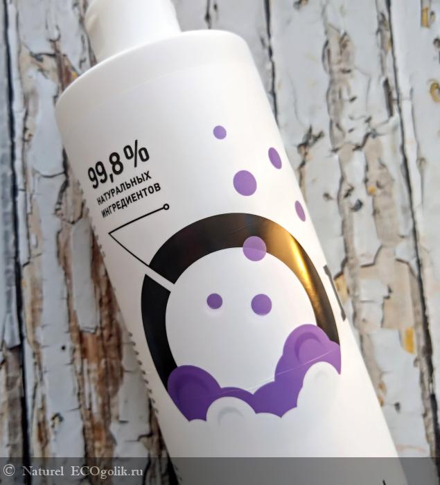 Оформление в стиле бренда, мне оно импонирует. Оно минималистичное, но в то же время привлекает внимание, а стилизованные сиреневые пузырьки и воздушная шапка пены дополнительно указывают на предназначение средства.
