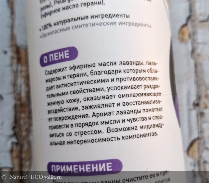 Наличие эфирного масла лаванды на 4 месте среди прочих ингредиентов определяет аромат пены, он лавандовый. Очень вкусный и яркий.
