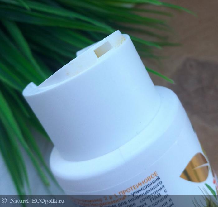 Отверстие дозатора оптимально для подачи средства. Шампунь дозируется легко, без проблем контролируется порция, поэтому за расход можно не переживать.