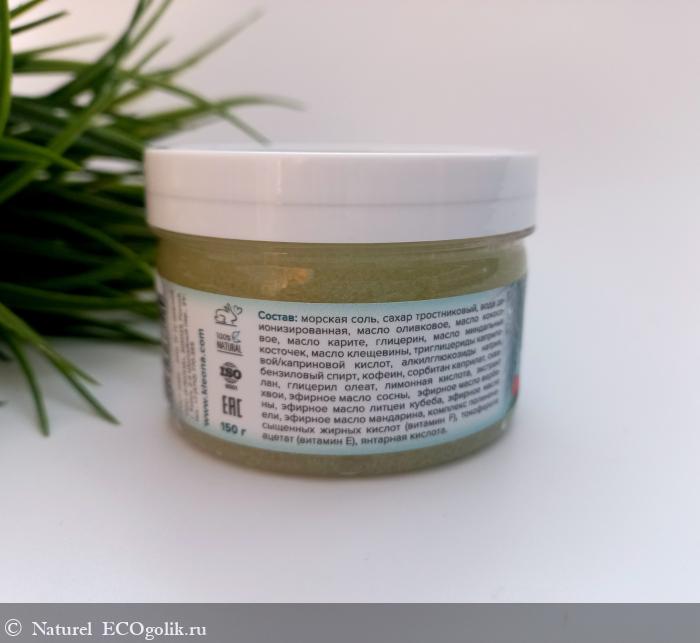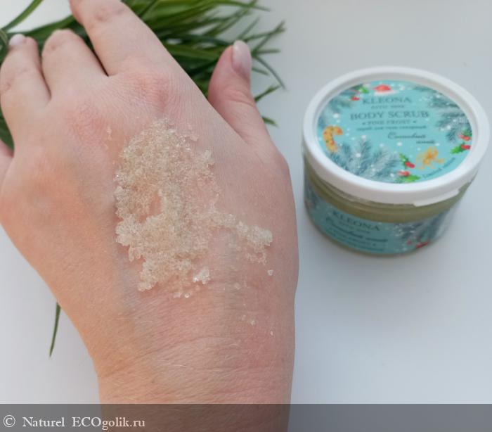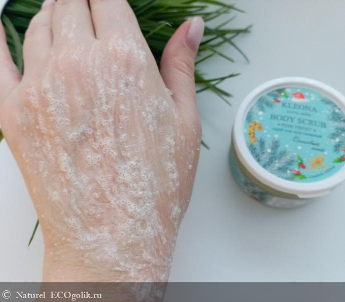 Мой сегодняшний отзыв будет посвящен Скрабу для тела «Сосновый иней» от бренда Kleona.
