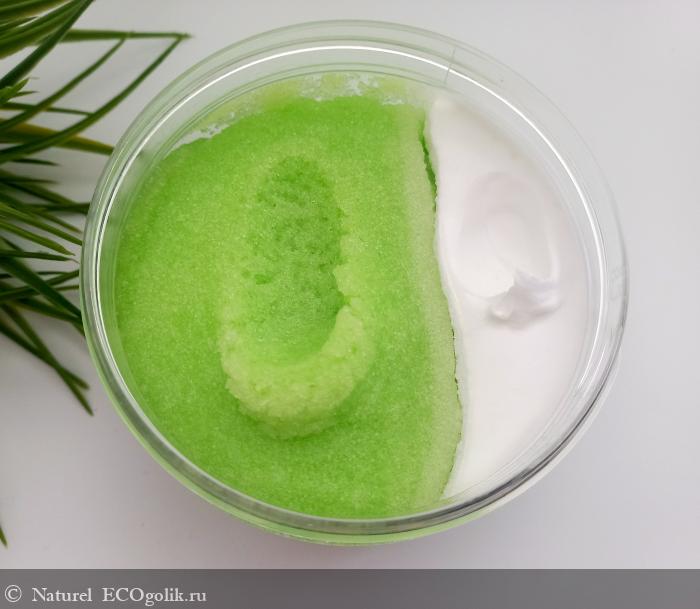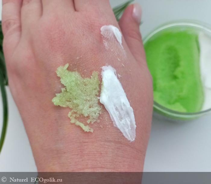 Текстура скраба двухфазная: собственно говоря сам сахарный скраб и крем.
