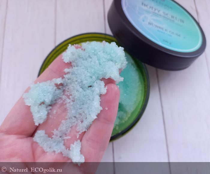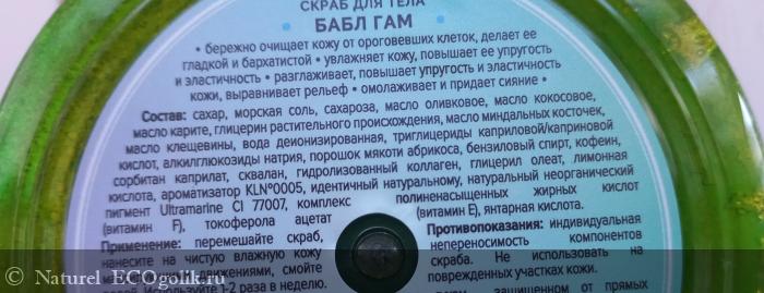 Как и большинство сахарных скрабов, по мере скрабирования Bubble Gum немного эмульгируется, но это не влияет на качество процедуры, и скрабирующий эффект получается достаточно интенсивным, но деликатным.