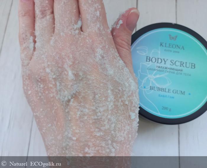 Увлажняющий сахарный скраб для тела «Bubble Gum» от бренда Kleona– это настоящая находка. Он обладает неверотяным ароматом, не травмирует кожу, а самое главное обеспечивает качественное скрабирование и отличный ухаживающий эффект за счет увлажнения. Вы обязательно должны попробовать эти скрабы. Я попробовала пока 3: Тутти-Фрутти, Бабл Гам и Нежную лаванду, и каждый оставил неизгладимое впечатление в моем сердце.