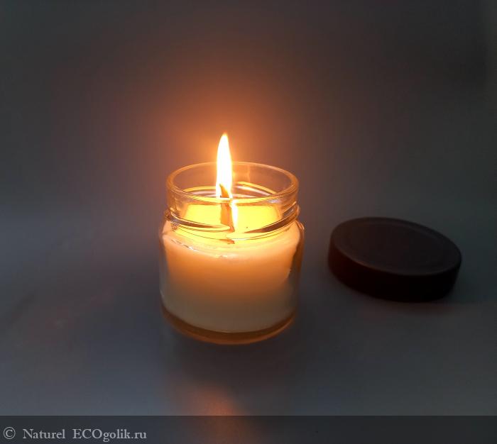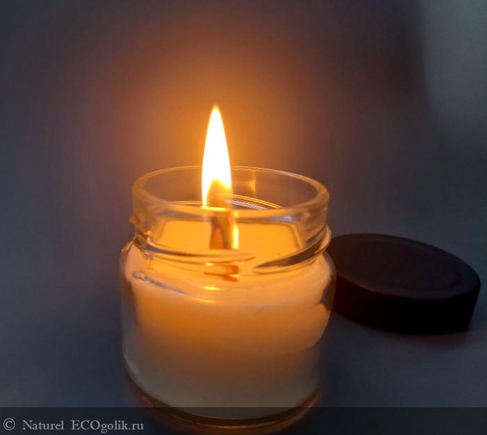 Аромат свечи успокаивает, снимает напряжение, гармонизирует психо-эмоциональный фон, а легкое потрескивание фитиля создает уютную атмосферу.