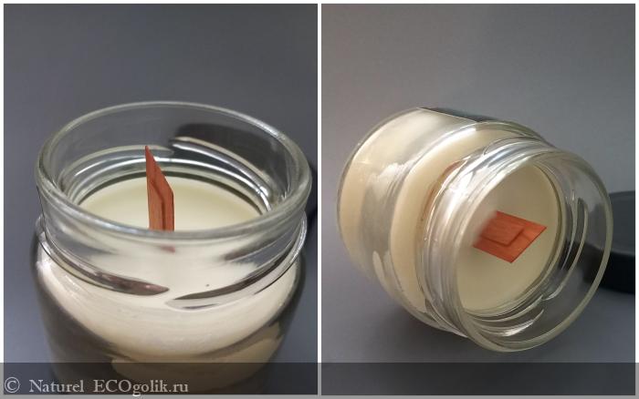 Огромным достоинством продукта я считаю двойной деревянный фитиль, который во время горения создает особую атмосферу уюта и гармонии благодаря слышимому потрескиванию.
