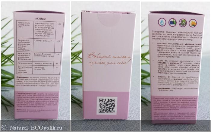 Сыворотка содержит максимально полный комплекс активов, направленных на быстрое восстановление эпидермального барьера и способности кожи удерживать влагу: