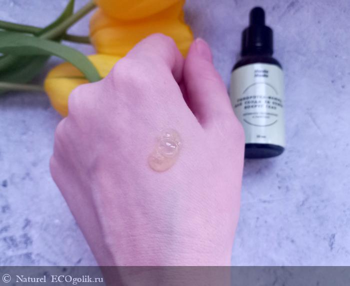 После применения сыворотки кожа вокруг глаз становится мягкой, мелкие морщинки разглаживаются за счет хорошего увлажняющего эффекта. Утром сыворотка, нанесенная на ночь, не провоцирует отечность, внешний вид свежий и отдохнувший, даже нет необходимости в использовании патчей.