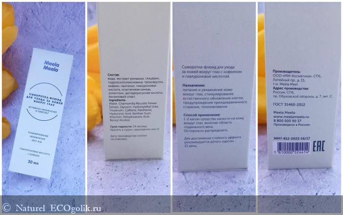 Сыворотка – флюид для ухода за кожей вокруг глаз «Активное увлажнение и лифтинг» от бренда Meela Meelo мне очень понравилась. На мой взгляд, она не дает завышенных обещаний, но выполняет все заявленное производителем.