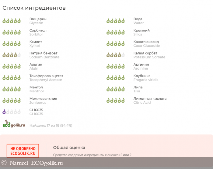 К сожалению, сервис проверки не распознал ароматизатор, а также не одобрил краситель.