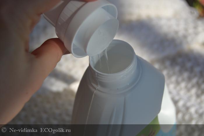 Дозировка. На обратной стороне флакона производитель приводит целую целую таблицу с рекомендациями по количеству средства в зависимости от жесткости воды и степени загрязнения вещей (от 50 до 100 мл на 4-5 кг белья). Я в среднем использую 2 колпачка средства на стирку. Почему-то мне показалось, что 1,5 колпачка (в отличие от Большой стирки) маловато, поэтому и расход получился чуть выше