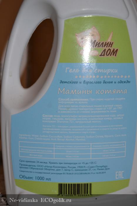 В моем списке отзывов к публикации осталось несколько пунктов, которые я планировала опубликовать в прошлом году, но болезнь внесла свои коррективы( Поэтому исправляюсь и делюсь своим опытом использования Геля для стирки детского и взрослого белья "Мамины котята" от производителя Милин Дом, полученного мною на тестирование в рамках сервиса Приглашение бренда на портале Экоголик.