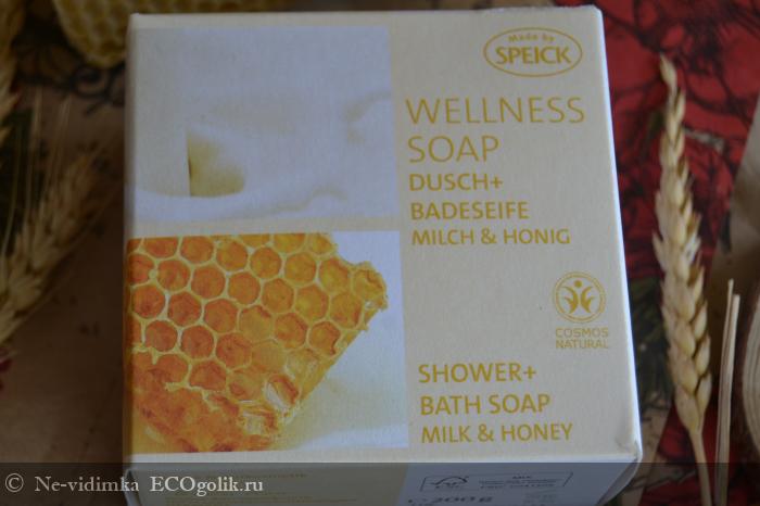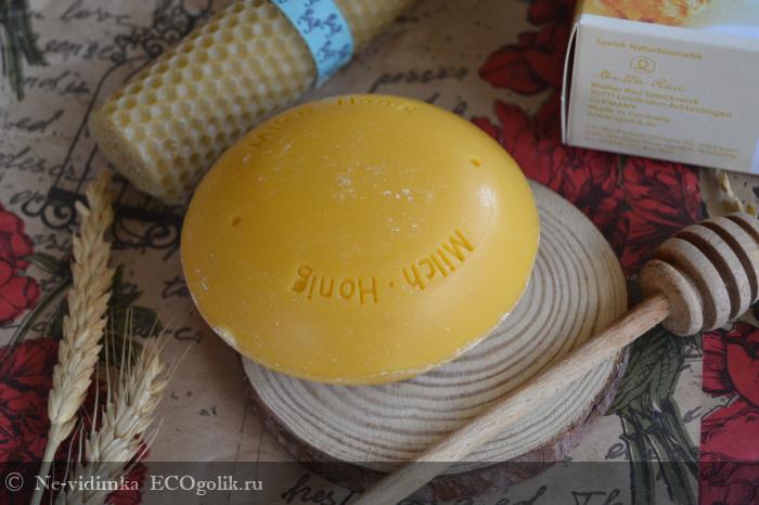 В первых числах апреля я достала из своей небольшой коробочки запасов мыло "Молочное с мёдом" Speick.